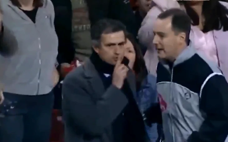 За жест португальца удалили (как он утверждает, четвертому судье настучал полицейский, стоявший у трибун) – посчитали, что это провокация болельщиков «Ливерпуля». Позднее Моуринью объяснял, что призывал заткнуться журналистов, которые перед матчем писали о кризисе в команде из-за двух поражений подряд.