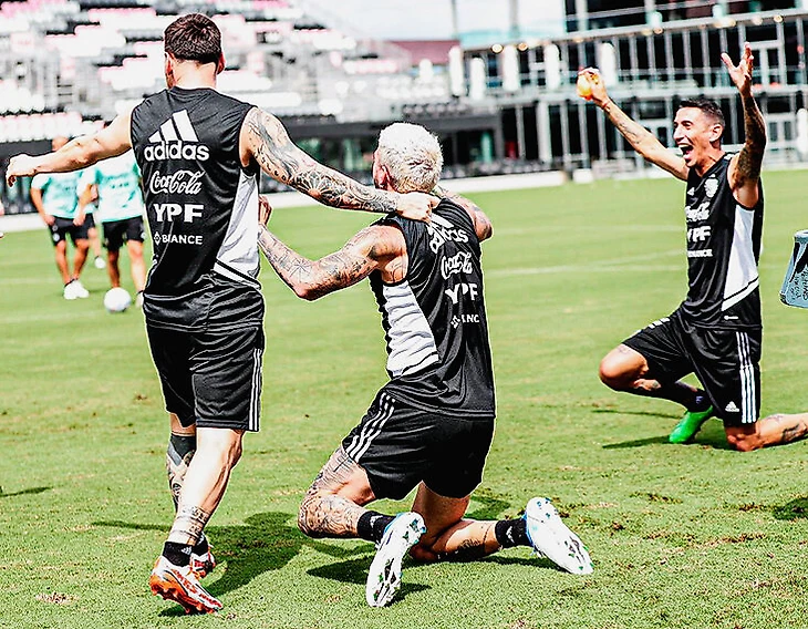 На тренировках сборной Де Пауль тоже не отлипает от Лео.