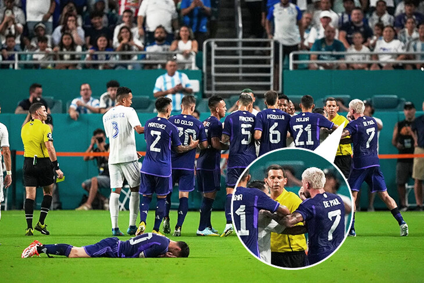 Первым защищать Месси подбежал Родриго де Пауль и накричал на Флореса. И добился своего! Игрок Гондураса получил желтую карточку, после чего конфликт погас.