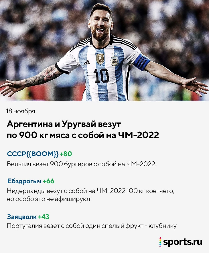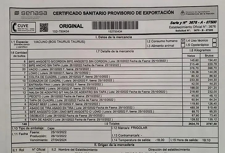 ESPN писал, что Аргентина и Уругвай доставили по 900 кг. Но у аргентинских медиа другие данные: телеканал поделился сертификатом Национальной службы здоровья животных и качества агропродовольственных товаров (SENASA), который одобрил перевозку сборной Аргентины 2630 кг мяса. То есть только аргентинцы привезли больше 2,5 тонн!