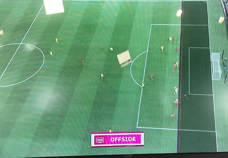 «ВАР рассматривал эпизод при подаче в штрафную площадь. Этот момент дали в стоп-кадре, когда вратарь Катара боролся за верховой мяч. В мяч сыграли и вратарь, и игрок Эквадора. В момент касания партнер эквадорца Эстрада находился вне игры, это хорошо показала графика ФИФА. Для удобства определения офсайда графисты убрали остальных игроков из кадра и показали, где находился Эстрада в момент, когда партнер касался мяча. Учитывая, что мяч оснащен чипами и реагирует даже на минимальные касания (включая двойные), ВАР смогли точно определить момент передачи».