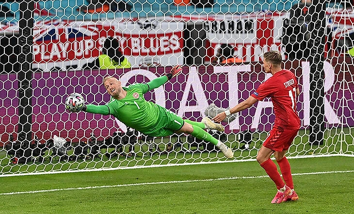 В 1/8 финала Дания без шансов смяла Уэльс (4:0), а в четвертьфинале на равных бодалась с Чехией – но все же выиграла (2:1). В полуфинале ждала сборная Англии. На 30-й минуте забил Миккель Дамсгор, а на 39-й Симон Кьер – но уже в свои ворота. Игра дошла до дополнительного времени – в первом экстра-тайме после падения Рахима Стерлинга в ворота датчан назначили спорный пенальти, который со второй попытки реализовал Харри Кейн.