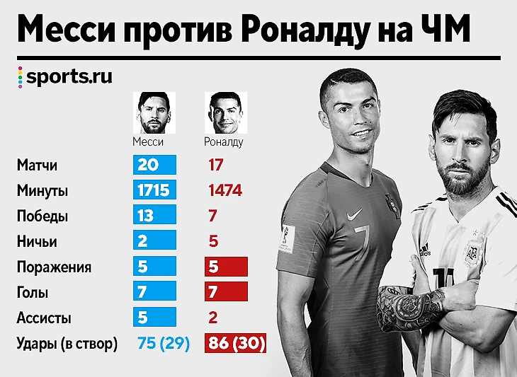 Месси догнал Роналду по голам на ЧМ. А кто эффективнее на чемпионатах мира?