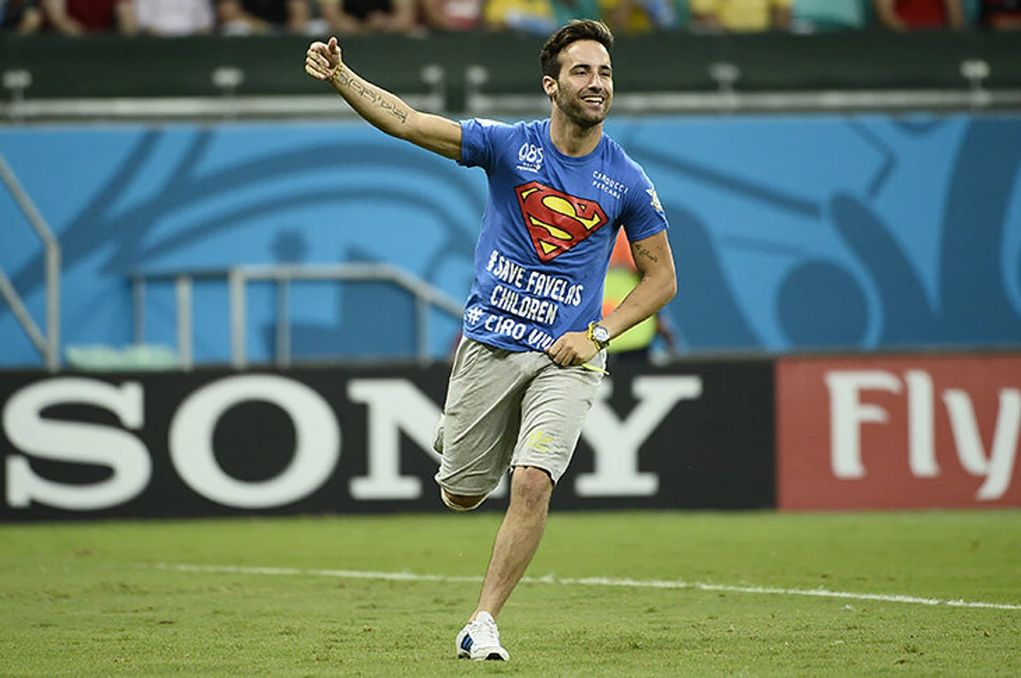 Он выбегал с разными посланиями – от «Мир во всем мире» до «Спасите детей в фавелах».