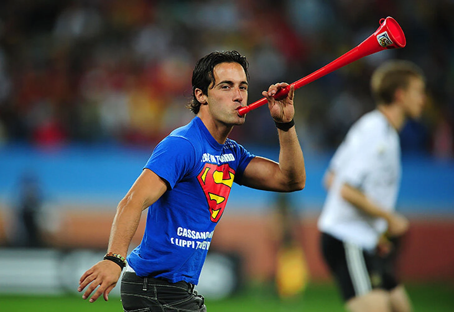 • в полуфинале ЧМ-2010 между Испанией и Германией – с вувузелой и в футболке с надписью «Кассано в сборную!»