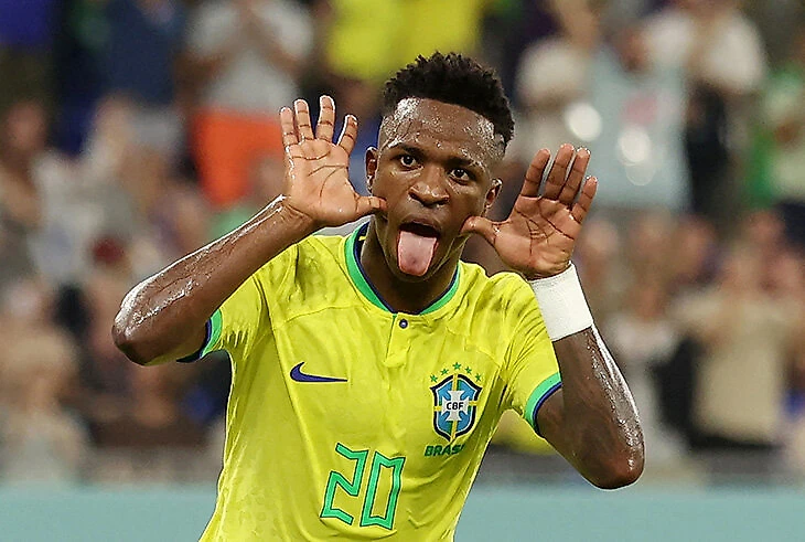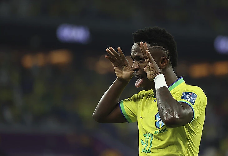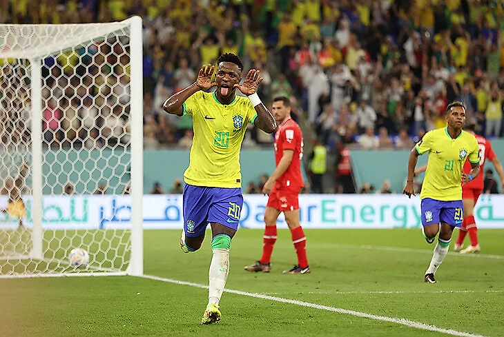 Бразилия забила Швейцарии в начале второго тайма, гол Винисиуса справедливо отменили из-за офсайда, но сам Вини до ВАР-просмотра об этом не знал, поэтому праздновал.