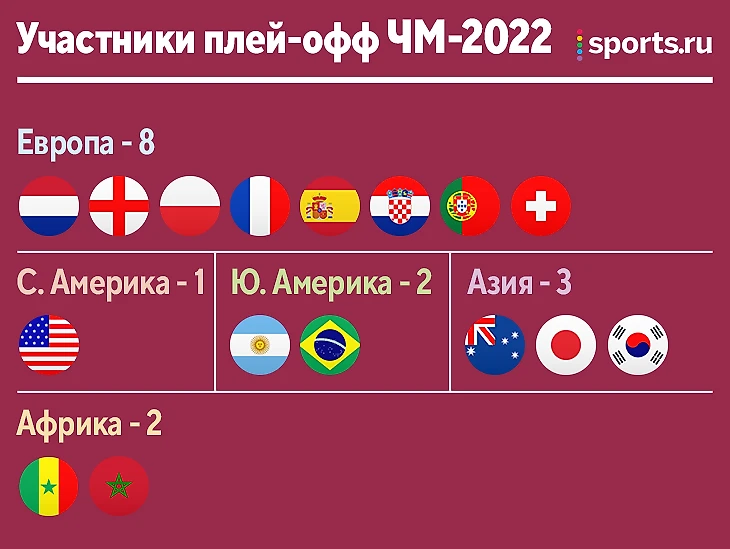 Сколько команд из разных конфедераций добрались до плей-офф ЧМ-2022?