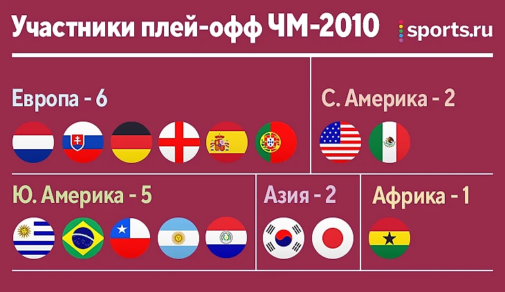 Зато на ЧМ-2010 европейские сборные резко просели по результатам – до плей-офф добрались лишь 6 команд. Порадовало выступление южноамериканцев – 5 из 5 их сборных вышли в 1/8 финала.