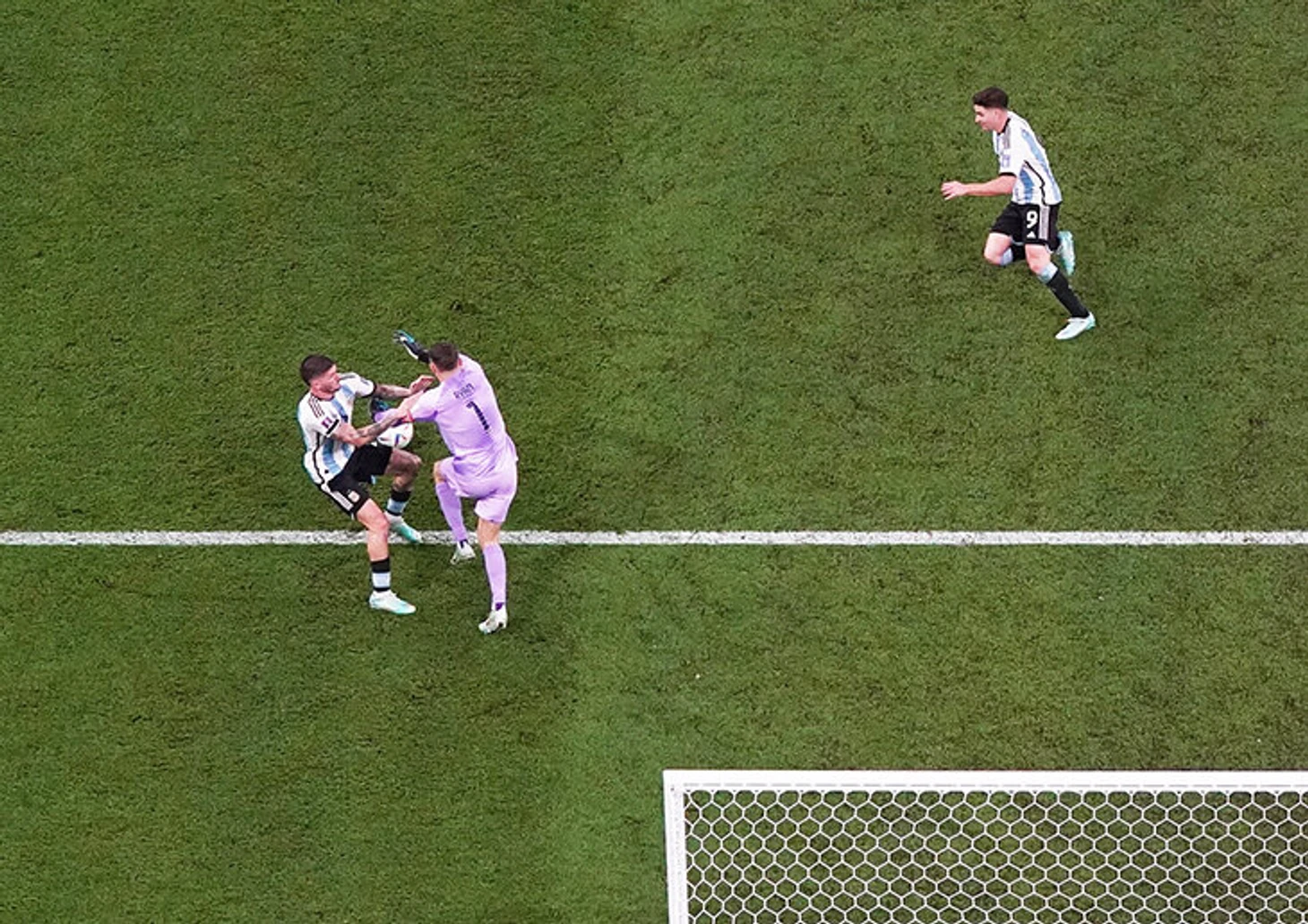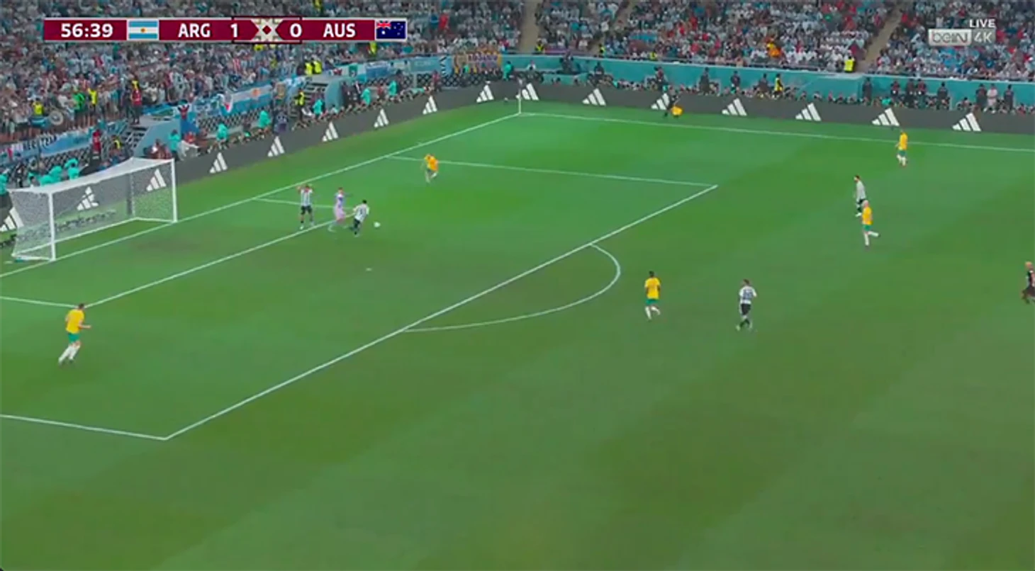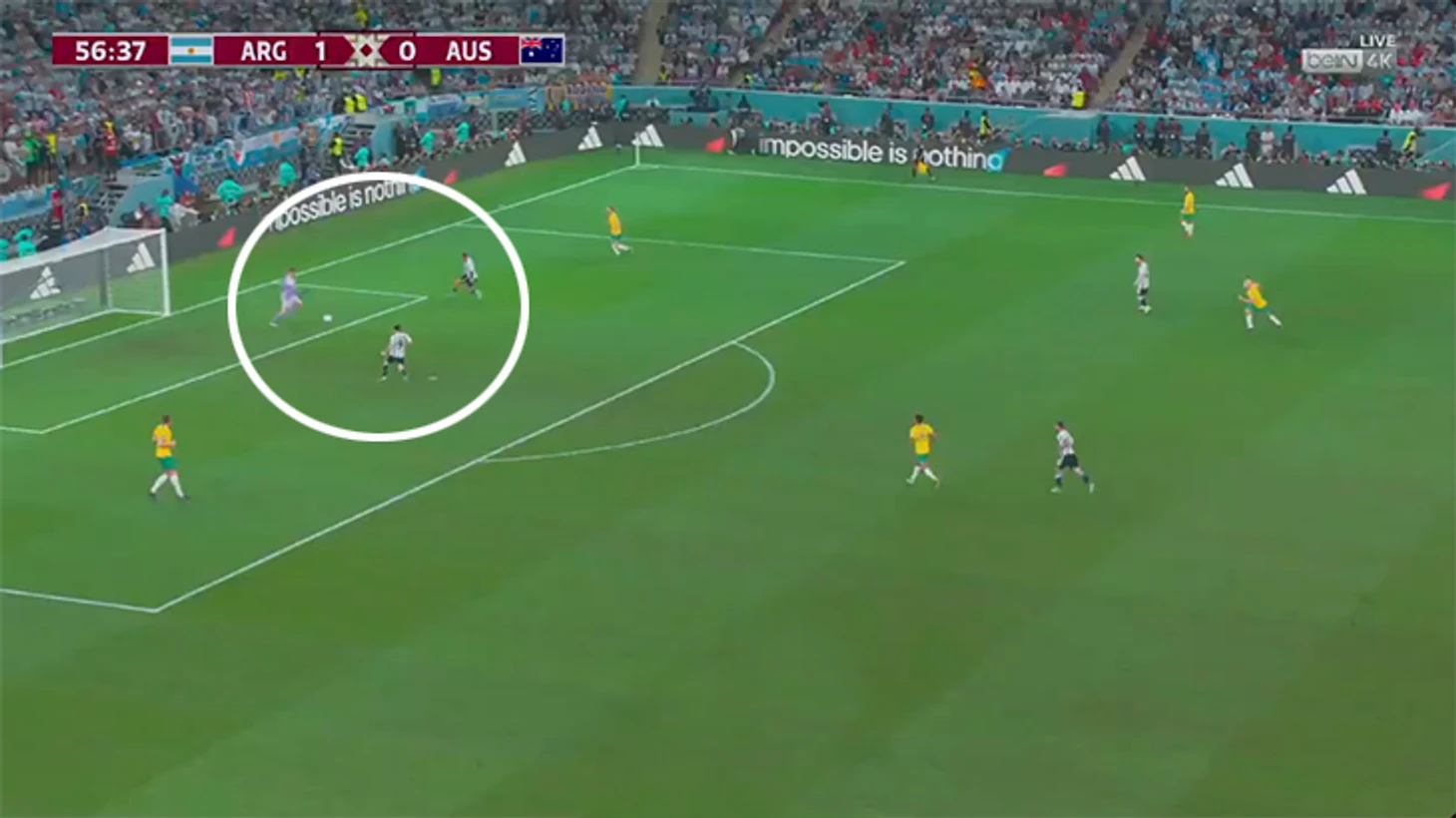 Райан неудачно принял пас от защитника и попался прямо в капкан аргентинцев – Родриго Де Поль и Хулиан Альварес оперативно окружили Мэтью. Райан попытался обыграть парочку – полный провал.