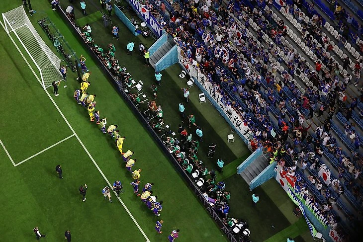 Фото дня. Сборная Японии поклонилась болельщикам после вылета с ЧМ