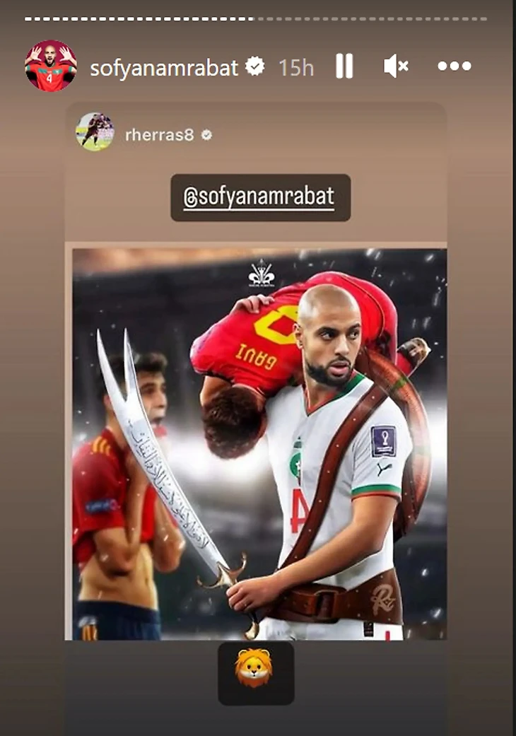 Хотя в испанской прессе предположили, что Амрабат держит катану – японский меч. Но похоже именно на Зульфикар. К тому же государственная религия Марокко – ислам.