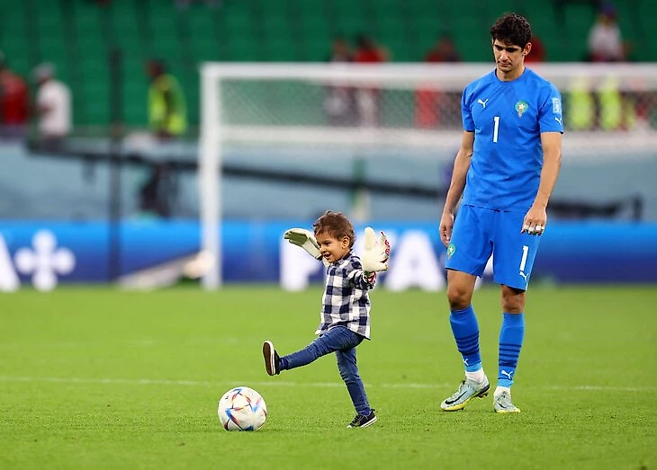 А когда стадион опустел, Яссин Буну вернулся на поле с маленьким сыном.