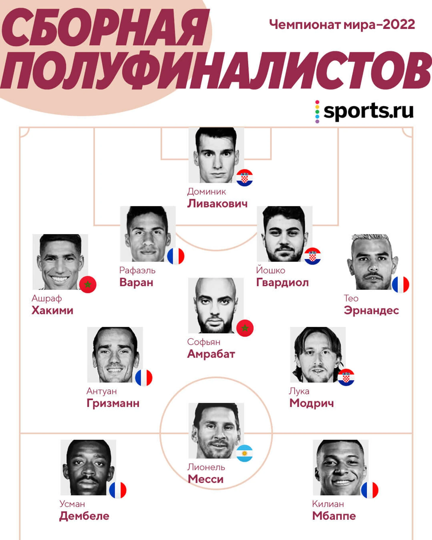 Сборная полуфиналистов ЧМ-2022 по версии Sports.ru: сразу 5 французов и всего один аргентинец – Лео Месси