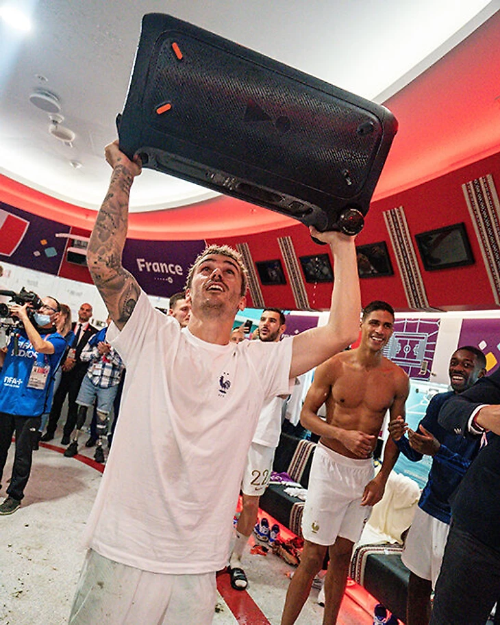 В раздевалке Франции было уютно и весело. Гризманн взял любимую колонку, а фотограф поймал абсолютное счастье.