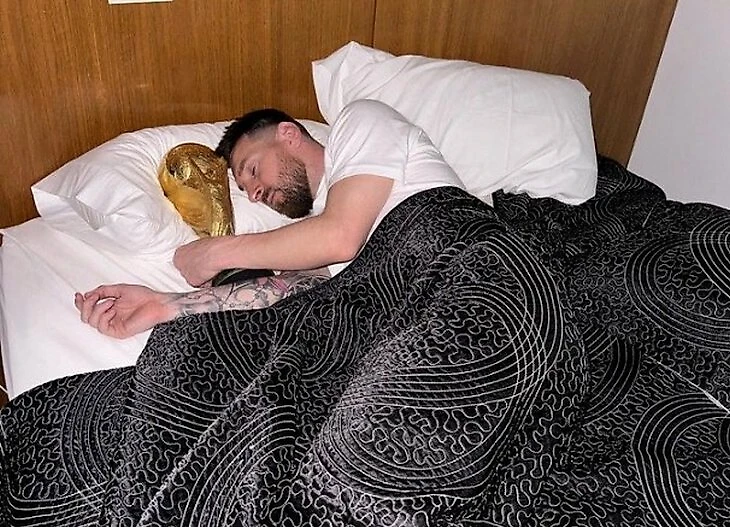 Лео Месси ни на секунду не расстается с кубком мира. Даже во время сна!