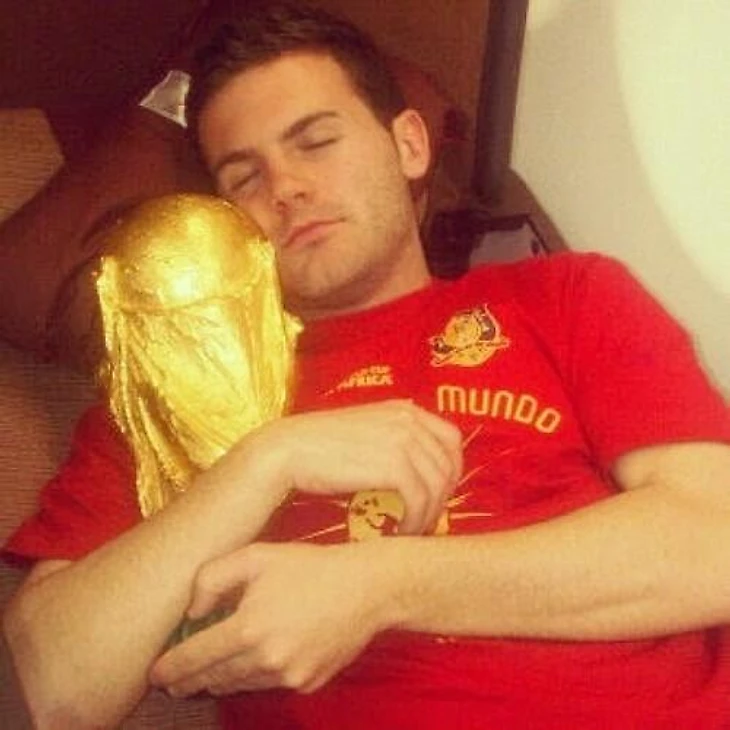 Хуан Мата прикорнул с трофеем прямо в самолете еще в 2010-м.