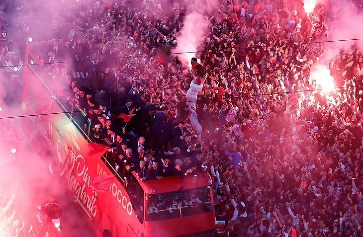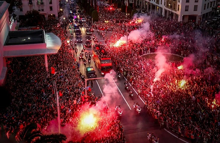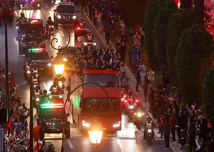 Жаркий прием после ЧМ футболистам устроили не только в Аргентине и Хорватии. Во вторник героев встречали и в Марокко.