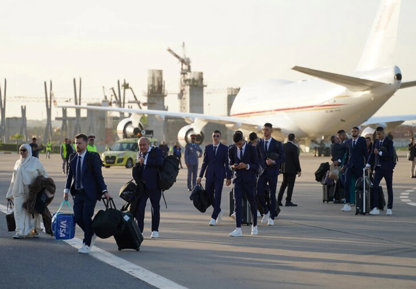 Народ начал скапливаться на улицах Рабата после приземления самолета сборной.