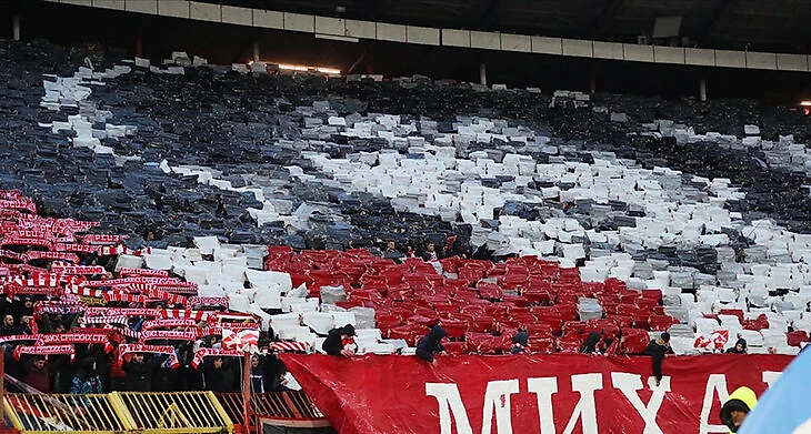«Михайлович навечно». Изображение на всю трибуну, мощный заряд и особенные футболки – в Белграде чтят память легенды