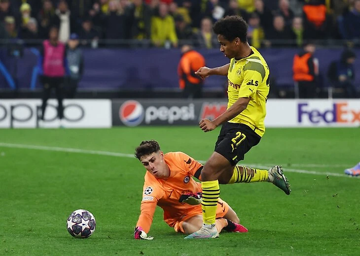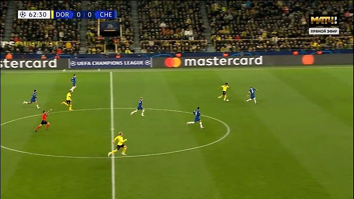 Все благодаря Кариму Адейеми, который подхватил мяч еще на своей половине. При этом единственный блок на пути к чужим воротам – Энцо Фернандес.