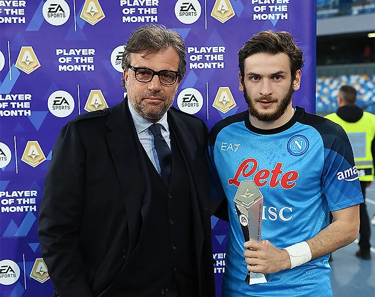 «Впервые я увидел нарезки с ним в разгар карантина. Ему было 19 лет. Гаттузо еще работал здесь, и Хвича сразу понравился. Я помню, мы позвонили Каладзе, чтобы разузнать о Хвиче побольше. Он играл за «Локомотив» и не показал там ничего поразительного, а в «Рубине» уже играл лучше. «Рубин» запросил у нас 30 млн евро. Мы прекратили контакты, не начали переговоры. Работа кипела над трансфером Осимхена. Это сложная сделка.