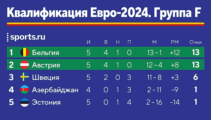 ● Австрия на выезде прибила шведов (3:1). Марко Арнаутович с дублем, команда Ральфа Рангника – по-прежнему без поражений. Здесь пока без конкурентов за выход на Евро: Бельгия и Австрия в заметном отрыве от шведов.