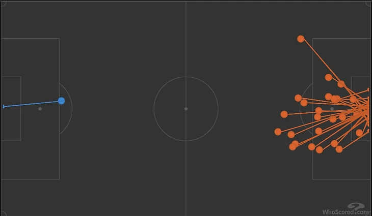 Статистика и карта 30-летнего черногорца отдельный восторг. За тайм у него всего семь передач, все – точные, в том числе этот ассист. Заметил Павел Тихонов, подпишитесь на его канал «Соккер-радар».