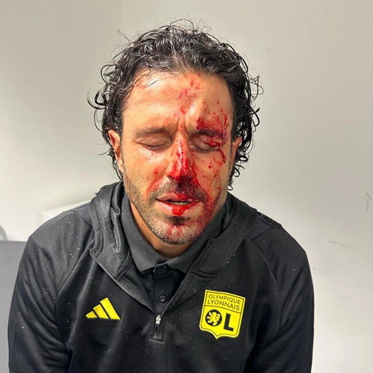 Осколки ранили тренера. Судя по фото, пострадали лоб и левый глаз. Досталось и помощнику Гроссо – Рафаэле Лонго.