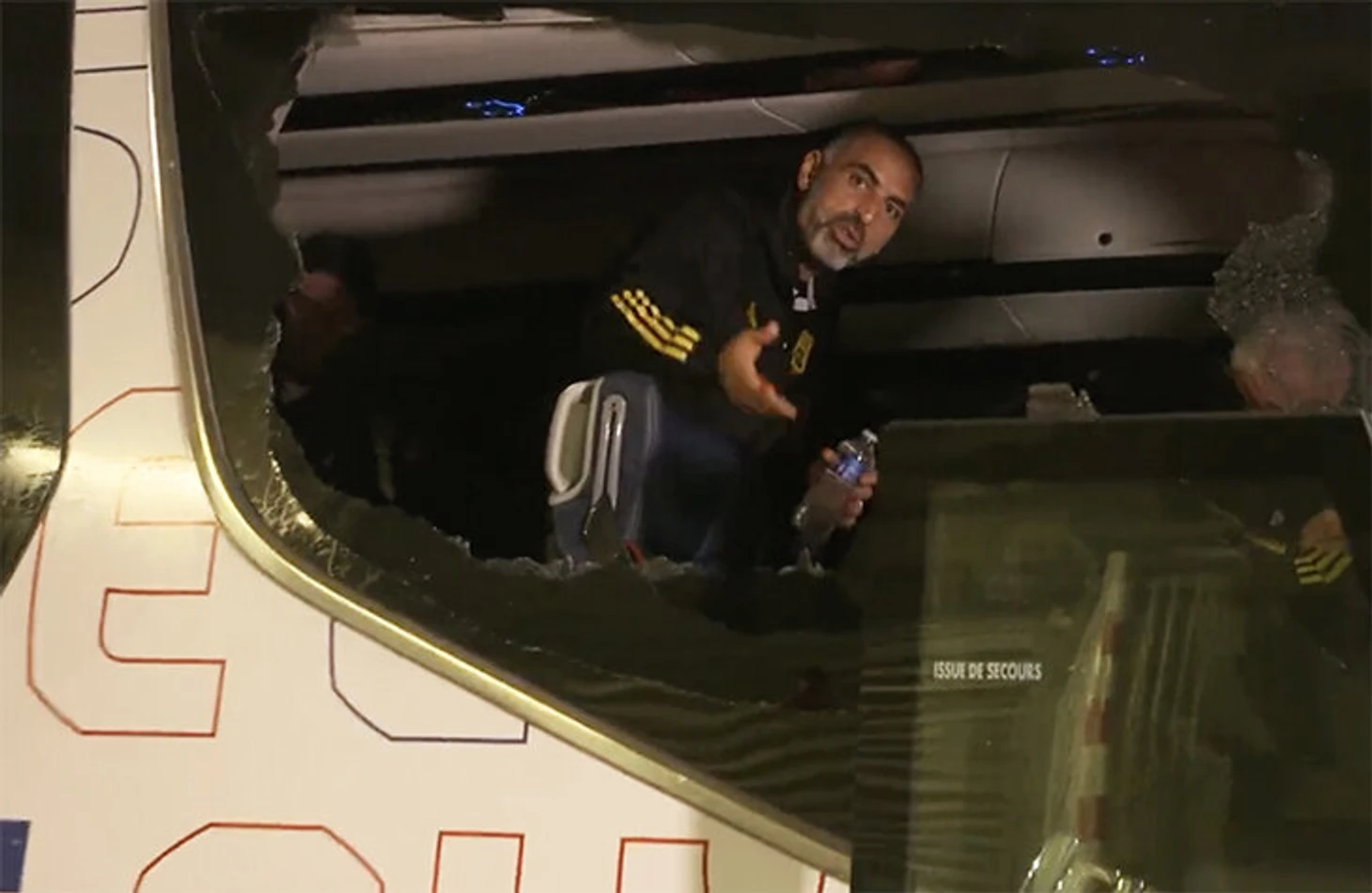 Фанаты разбили стекло на той стороне, где сидел Гроссо. Автобус приехал на стадион уже поврежденным.