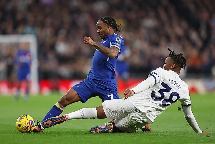 🟥 Дальше безумная цепочка продолжилась – и «Тоттенхэм» остался вдевятером. Удоджи на 55-й минуте пошел наперерез Стерлингу и наотмашь ударил в подкате. Вторая желтая карточка и удаление. Уже в подкате Удоджи понял, что совершил глупость, но было поздно.