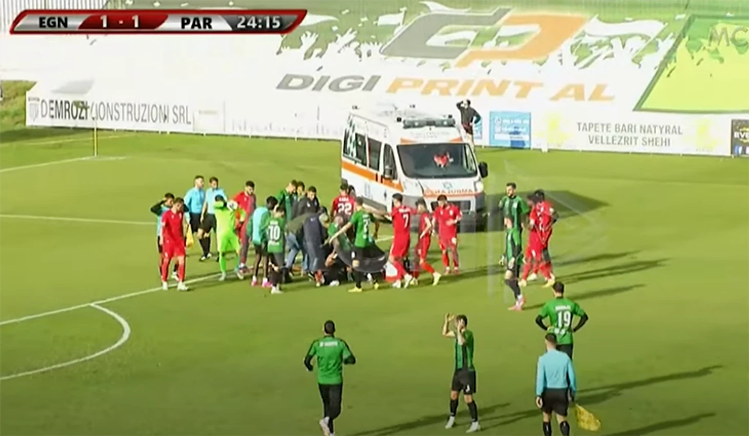 Футболист «Эгнатии» потерял сознание на 24-й минуте игры чемпионата Албании против «Партизани» – играли два лидера. Двамена рванул резко упал на газон, рядом не было никого из соперников.