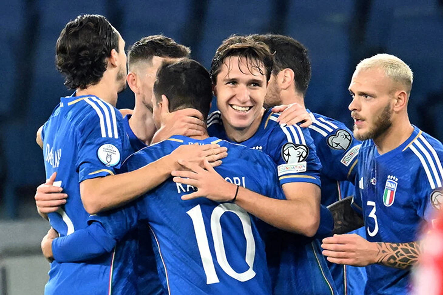 ● Италия принимала Северную Македонию, расклады для хозяев были просты: при победе устроит ничья в последнем туре с Украиной, при потере очков – только победа над украинцами. Да еще и свежи в памяти ужасы полуторагодовалой давности – именно македонцы не пустили итальянцев на ЧМ-2022 в стыках.