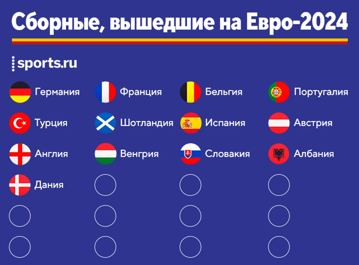 А вот и список, который сегодня пополнился сборными Албании и Дании:
