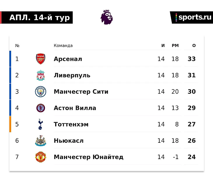 Продолжается погоня за «Арсеналом», который идет первым. «Ливерпуль» отстает на два очка и пока на втором месте, теперь уже выше «Ман Сити», потерявшего очки против «Тоттенхэма».