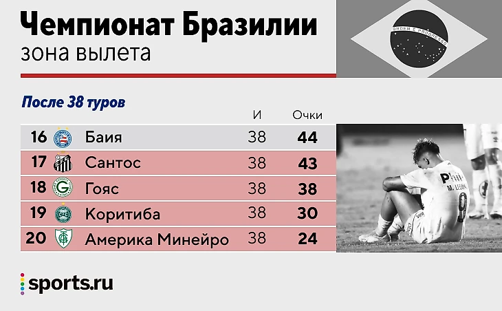 Есть и совсем грустная новость: из Серии А впервые за 111-летнюю историю вылетел «Сантос». В первом же сезоне после смерти Пеле, с которым клуб переживал расцвет в середине ХХ века.