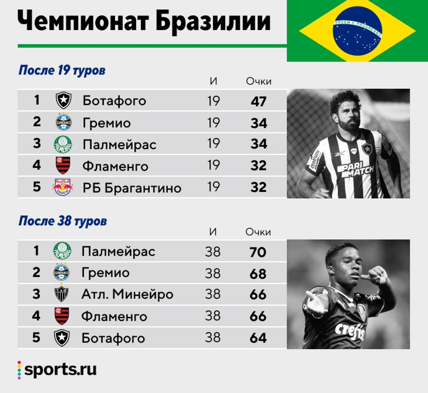 Этот чемпионат надолго запомнит «Ботафого». Сначала клуб стремительно взлетел на первое место и заработал 13-очковый отрыв. Однако затем фора быстро улетучилась.
