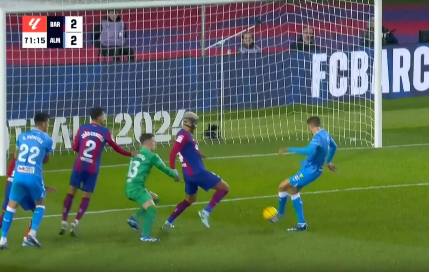 Рафинья открыл счет на 33-й минуте. Еще через восемь минут «Альмерия» сравняла. Пас в атаку прервал Рональд Араухо, но как: мяч от него отскочил к сопернику – Серхио Аррибасу.