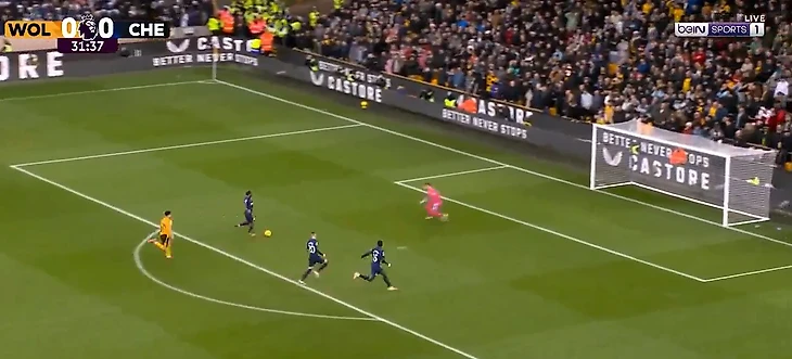 На отскоке никто из тройки форвардов тоже не успел сыграть. Мяч достался игроку «Челси», но уже за пределами штрафной, когда набежали другие защитники. Гол не состоялся.
