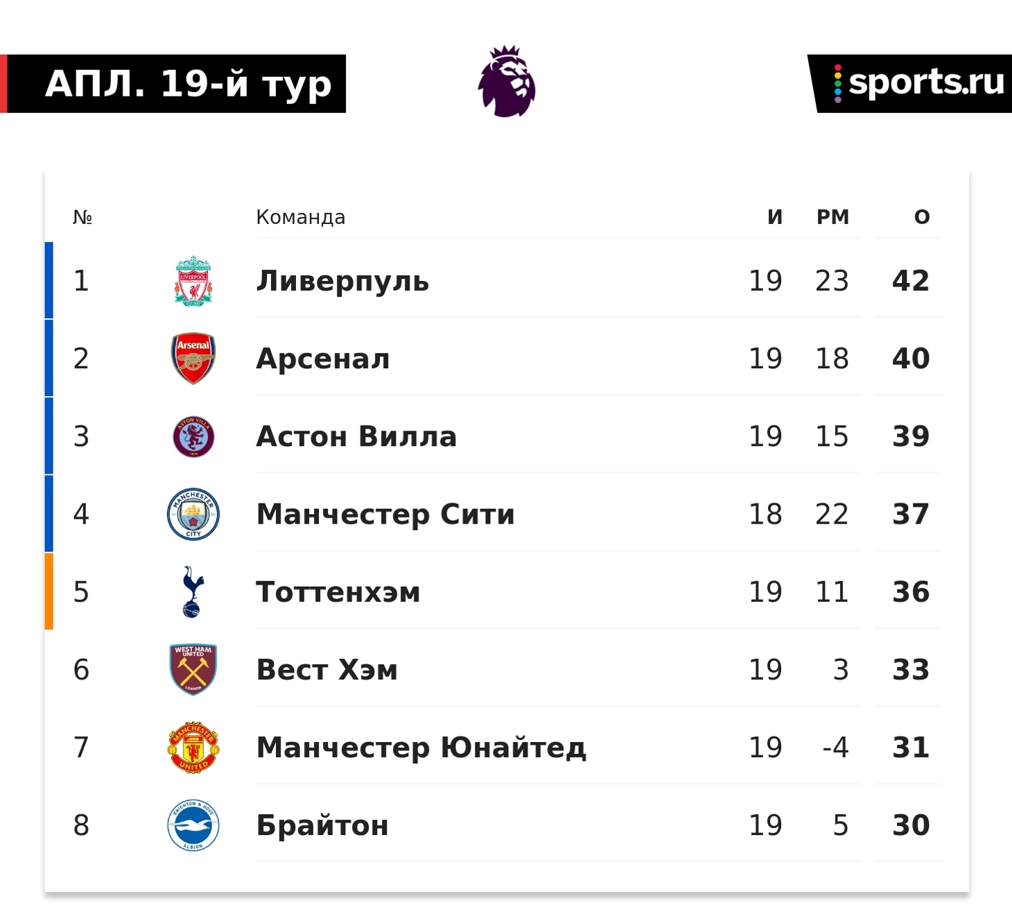 Следующий матч у «Арсенала» – против «Фулхэма» в гостях 31 декабря, а «Вест Хэм» через пару дней после этого примет «Брайтон». Стартует 20-й тур матчем «Лутон» – «Челси» днем 30 декабря.