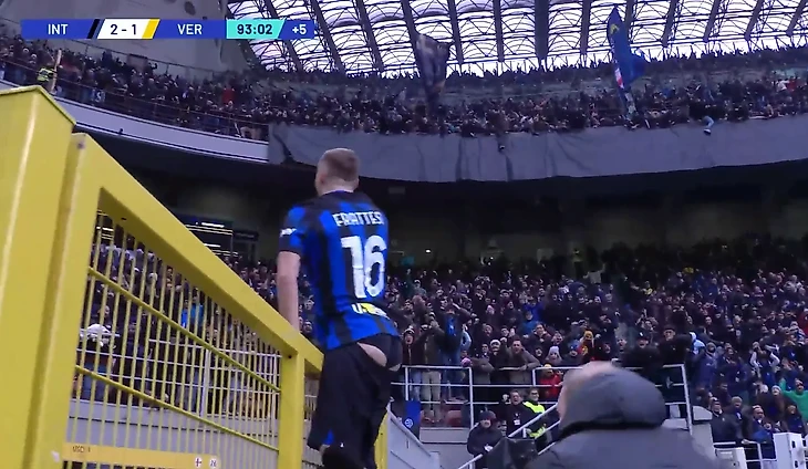 ⚽️ Давиде Фраттези на 90+3 успел на добивание и вывел «Интер» вперед – 2:1.