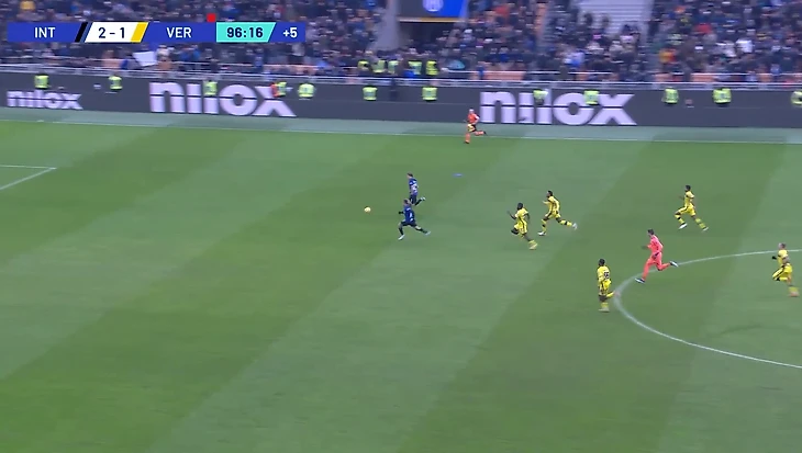 ❌ На 90+7 игроки «Интера» выбегали вдвоем на пустые ворота (вратарь застрял у чужих во время атаки «Вероны») и умудрились не забить.