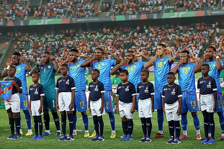 Для ДР Конго полуфинал Кубка Африки стартовал с очень сильного жеста. Во время гимна игроки прикрыли руками рты и приставили пальцы к вискам – как будто пистолеты.
