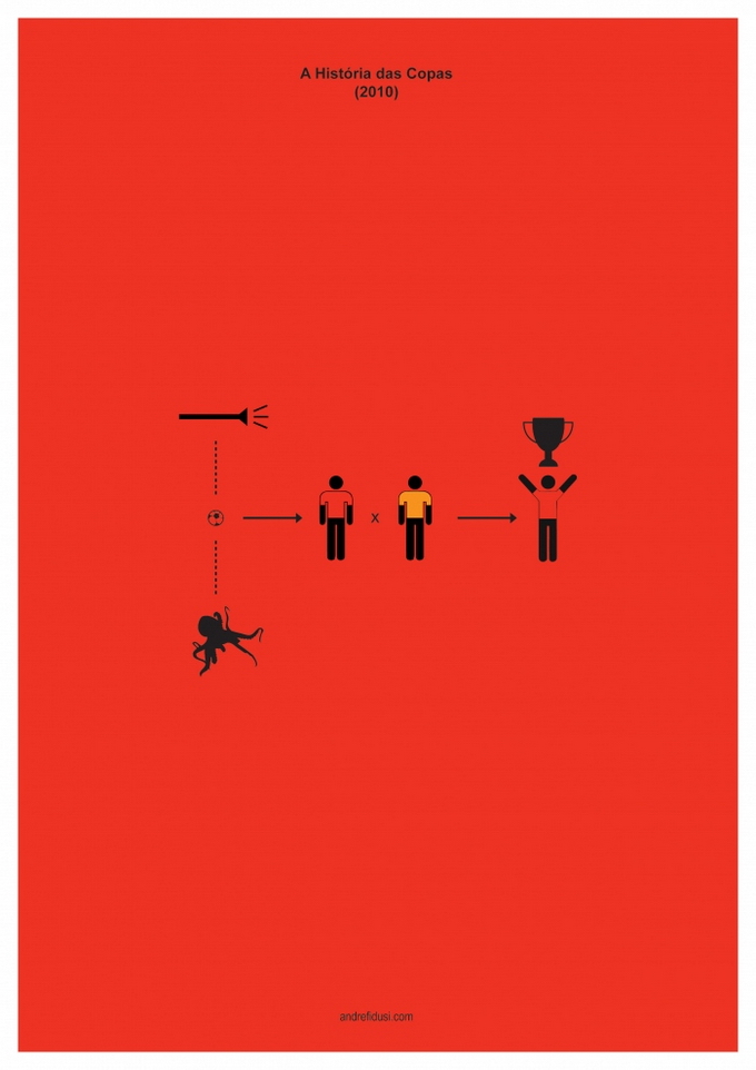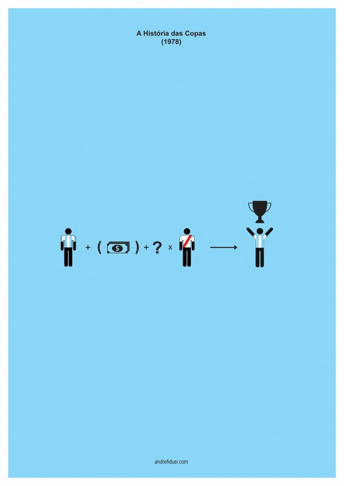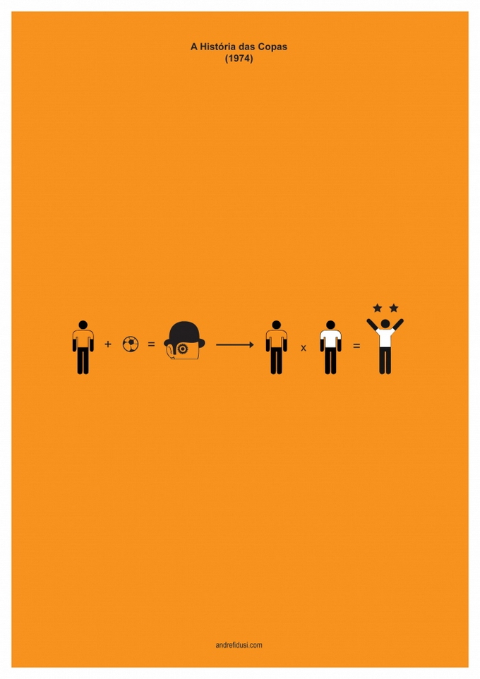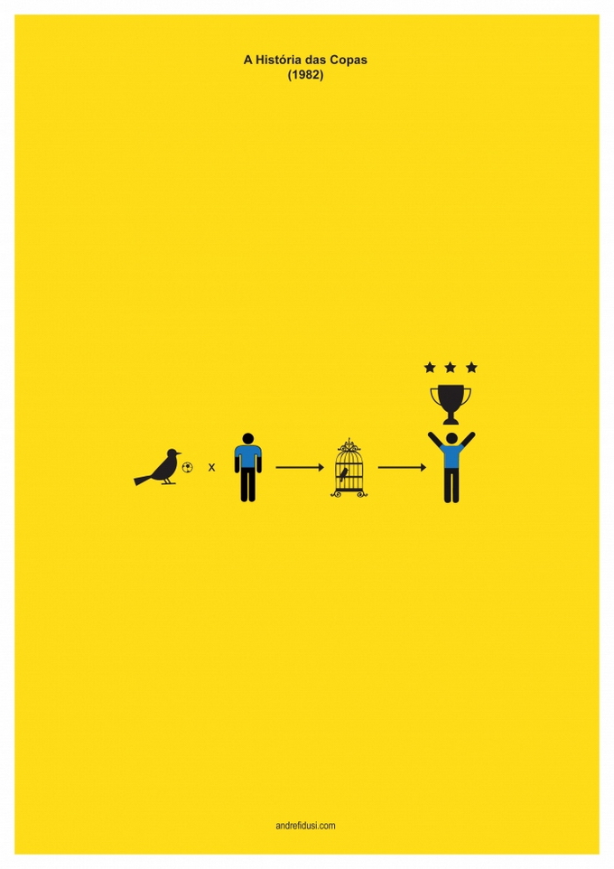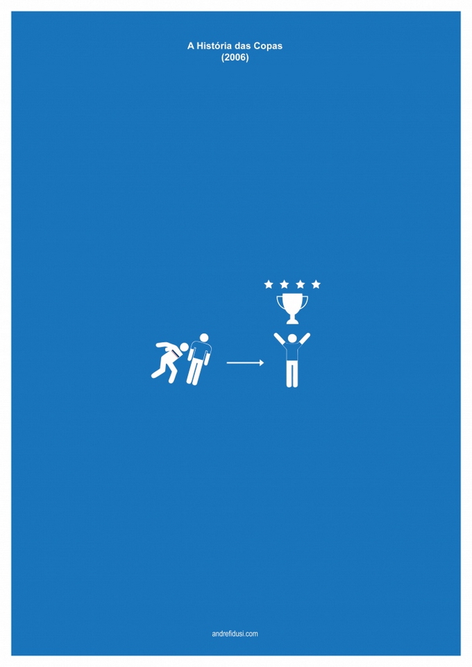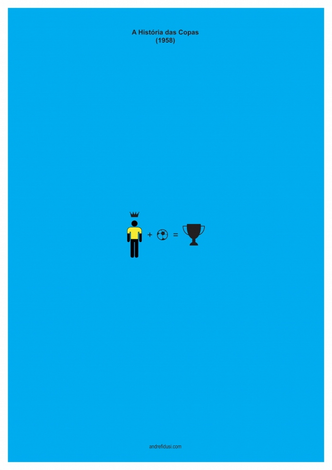 35-летний бразильский дизайнер Андре Фидуси (Andre Fidusi) создал серию минималистских постеров, изображающих все финалы чемпионатов мира по футболу в предельно сокращенном графическом виде.