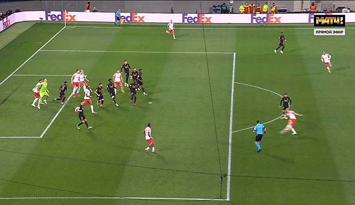 Сначала показалось, что вне игры находился Шешко – но нет, Родриго явно ближе к воротам, чем форвард на линии вратарской.