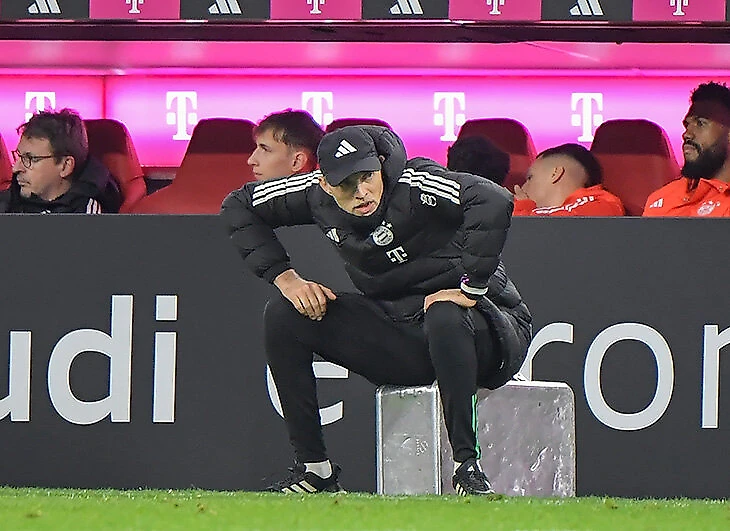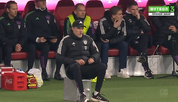 Это был первый матч «Баварии» под руководством Томаса Тухеля после новости об уходе по окончании сезона. Тренер сразу же привлек внимание: устроился не на скамейке.
