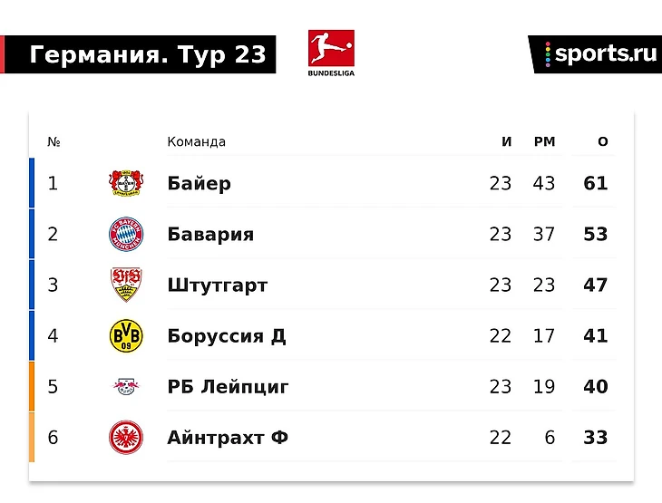 У «Баварии» именно «Фрайбург» – следующий, а потом две слабейшие командами лиги, «Майнц» и «Дармштадт». Любопытно, сохраняется ли через месяц те же восемь очков дистанции.