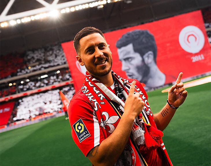 Эден Азар вышел на поле в футболке «Лилля» и поприветствовал зрителей.