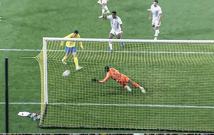 Криштиану в шоке. Как и вратарь, который не понимает, как только что не залетело. Вот это его простили!