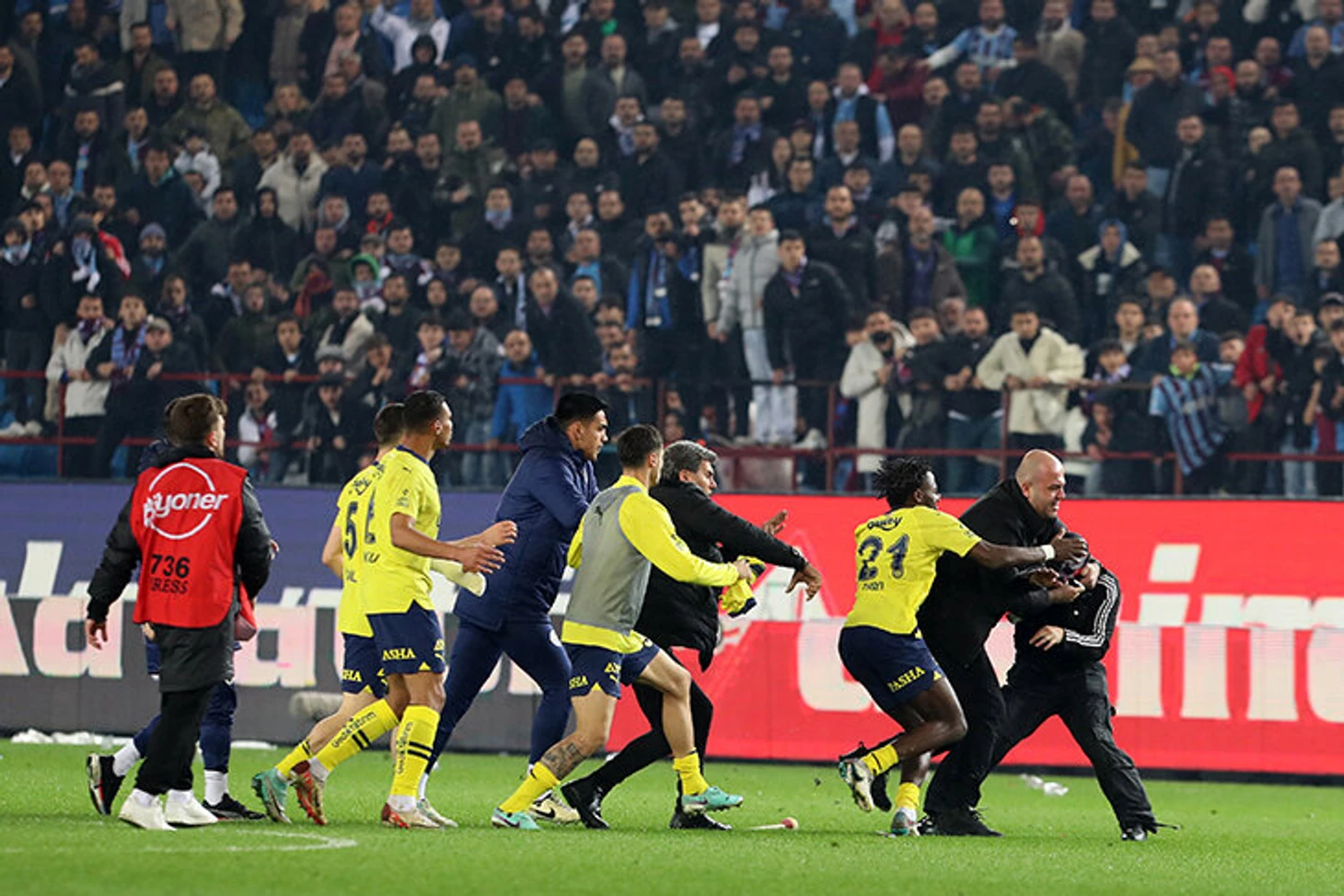 «Трабзонспор» и «Фенербахче» весело поиграли в футбол с пятью голами и восемью желтыми карточками. Еще горячее было после игры: игроки «Фенера» сначала поздравляли друг друга с гостевой победой 3:2, а потом отбивались от выбежавших фанатов.