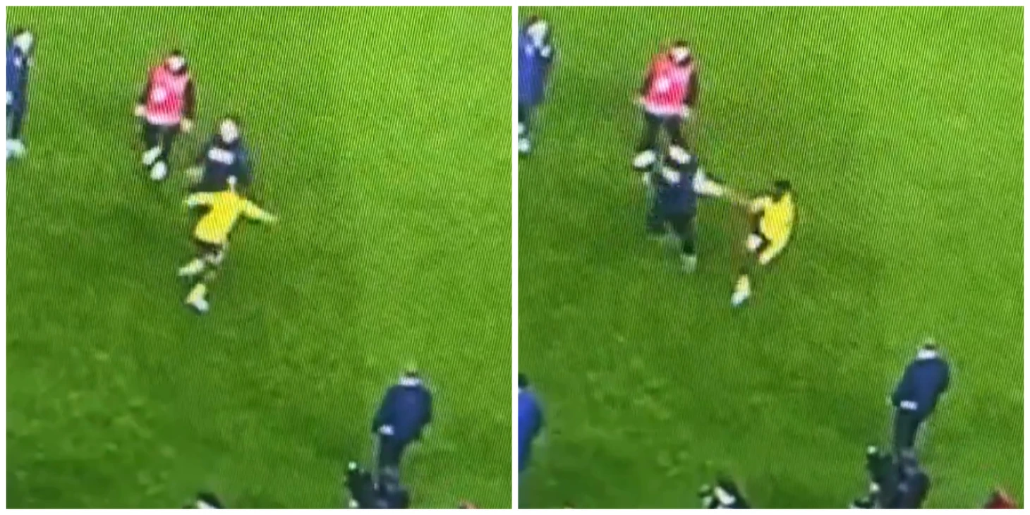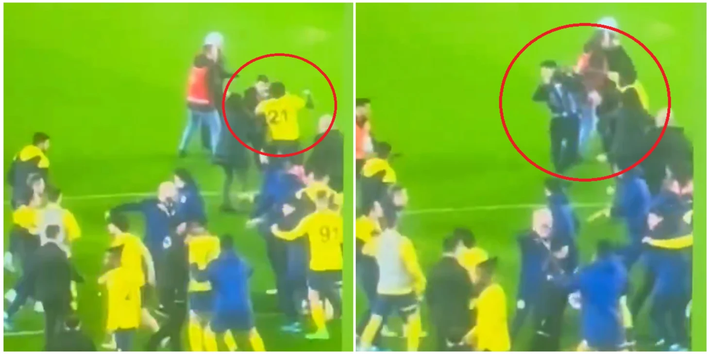 В это время защитник «Фенербахче» Брайт Осейи-Сэмюэл ударил одного из бежавших и сбил его с ног.